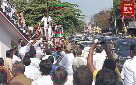 இதனிடையே, அதிமுக கட்சியின் சார்பில் எம்.ஜி.ஆர் சிலையை சுற்றிலும் கட்சி கொடி கட்டப்பட்டிருந்தது. இந்நிலையில் அமமுக கட்சியின் சார்பில் ஒன்றிய செயலாளர்கள் தவச்செல்வம், சுரேஷ் தலைமையில் ஏராளமானோர் மாலை அணிவித்து மரியாதை செலுத்தவிட்டு, அமமுக கட்சி கொடியை கட்டினார்கள்.