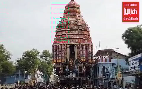 ஸ்ரீவில்லிபுத்தூர் ஆண்டாள் கோயிலில் கோலாகலமாக நடைபெற்ற ஆடிப்பூரத் தேரோட்டத்தில் ஆயிரக்கணக்கான பக்தர்கள் கலந்து கொண்டு வடம் பிடித்து தேர் இழுத்தனர்.