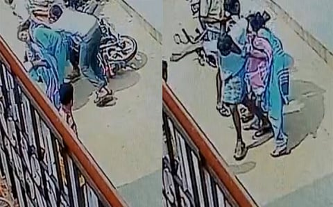 சங்கீதாவின் கணவர் ஜெயமணி கடந்த 6 மாதங்களுக்கு முன்பு இறந்து விட்டார். இந்நிலையில் ஜெயமணியின் பணத்தினை அவரது உறவினர்கள் வினோத்,விஜயகுமார் ஏமாற்றி விட்டதாக முன்விரோதம் இருந்துவந்தது. இந்நிலையில் மூரார்பாளையம் கரூர் வைஸ்யா வங்கியில் பணம் எடுப்பதற்க்க சென்றபோது சங்கீதாவை வினோத் விஜயகுமார் மற்றும் உறவினர்கள் சம்பத், சரமாரியாக தாக்கினர் மேற்கண்ட எதிரிகள் பின்தொடர்ந்து வந்து அசிங்கமாக பேசி, அடித்து, கொலை மிரட்டல் விடுத்தனர்.