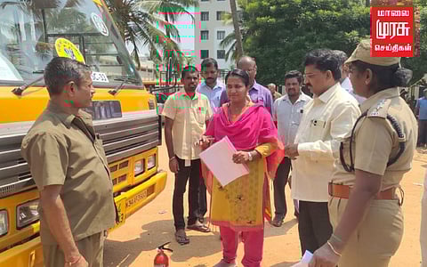 திருச்செங்கோடு வருவாய் கோட்டாட்சியர் கௌசல்யா வட்டாரப் போக்குவரத்து அலுவலர் சரவணன் வட்டாரப் போக்குவரத்து ஆய்வாளர் பாமாபிரியா ஆகியோர் இந்த ஆய்வினை மேற்கொண்டனர். இந்த ஆய்வு பணி குறித்து செய்தியாளர்களிடம் பேசிய வருவாய் கோட்டாட்சியர் கௌசல்யா கூறியதாவது பள்ளிகளுக்குச் செல்லும் சிறிய குழந்தைகள் பாதுகாப்பாக வாகனங்களில் பயணம் செய்ய ஏதுவாக அரசு பல்வேறு விதிமுறைகளை விதித்து அதனை ஒவ்வொரு ஆண்டும் பள்ளிகள் திறக்கும் போது ஆய்வு செய்ய உத்தரவிட்டது எனவும் அதன்படி வரும் ஜூன் ஒன்றாம் தேதி பள்ளிகள் திறக்கப்பட உள்ளதால் திருச்செங்கோடு வட்டாரப்போக்குவரத்து அலுவலகத்திற்கு உட்பட்ட வாகனங்களை சோதனை செய்யும் பணி நடந்தது எனவும் இதில் 23 வாகனங்களில் குறைபாடுகள் இருப்பது கண்டுபிடிக்கப்பட்டு சரிசெய்து கொண்டு வர அறிவுறுத்தப்பட்டுள்ளது எனத் தெரிவித்தார்.