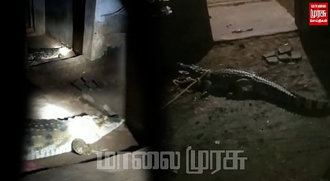 கடலூர் | புவனகிரி அருகே தாதம்பேட்டை கிராமத்தில் நேற்று இரவு முதலை ஒன்று வீட்டுக்குள் புகுந்ததால் பரபரப்பு ஏற்பட்டது. வெள்ளாற்று கரையோரம் தாதம்பேட்டை கிராமத்தில் நேற்று இரவு கிராமத்துக்கு வந்த முதலை ஒரு வீட்டிற்கு உள்ளே நுழைந்தது.