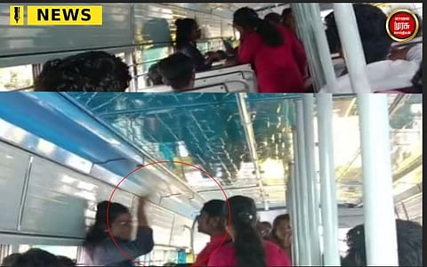 கல்லூரியில் இருந்து வழக்கம் போல் மாணவர்களும் ஆசிரியர்களும் பேருந்துக்குள் ஏறி செல்லும் பொழுது மாணவி அருகில் ஆசிரியை ஒருவர் அமர்ந்திருக்கிறார். அப்பொழுது அந்த மாணவி நீங்கள் யார் என்று கேட்டிருக்கிறார். அதற்கு அந்த ஆசிரியை இந்த கல்லூரியின் ஆசிரியர் என தெரிவித்திருக்கிறார். ஆசிரியை என்றால் கழுத்தில் ஐடி கார்டு அணியும் படி மாணவி ஆசிரியரிடம் தெரிவித்திருக்கிறார். நான் எதற்கு அணிய வேண்டும் என ஆசிரியை அந்த மாணவியிடம் கேட்டதற்கு, எங்களை மட்டும் அணிய சொல்கிறீர்கள் அல்லவா, நீங்கள் யார் என்று எங்களுக்கு எப்படி தெரியும் என இரண்டு பேருக்கும் வாய் தகராறு ஏற்பட்டிருக்கிறது. அப்பொழுது வாடி போடி என இருவரும் பேசிக் கொள்ளவே அந்த ஆசிரியை மாணவியை கன்னத்தில் அறைந்து விடுகிறார், அந்த மாணவியும் பதிலுக்கு அடிக்க துணிகின்ற இந்த வீடியோ தற்போது வைரலாகி வருகிறது.