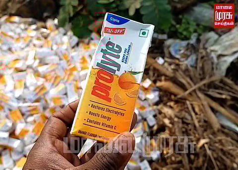 தாம்பரம் - மதுரவாயல் பைபாஸ் சர்வீஸ் சாலை அருகே கோர குன்றத்தூர் அடுத்த சில தரப்பாக்கம் அருகே குவியியல் குவியலாக காலாவதியான மருத்துவர் ஒ ஆர் எஸ் குளிர்பானங்களை மர்ம நபர்கள் கொட்டி சென்றுள்ளதால் பரபரப்பு ஏற்பட்டுள்ளது.