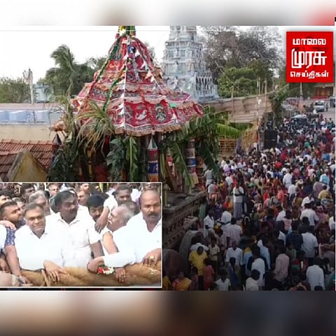 அதனைத் தொடர்ந்து, விழாவில் கலந்து கொண்ட ஆயிரக்கணக்கான பக்தர்கள் அரோகரா கோஷத்துடன் தேரை வடம் பிடித்து இழுத்துச் சென்றனர். தேரோட்டத்தை தொடர்ந்து, மாசித் திருவிழாவின் தெப்ப உற்சவம் நாளை இரவு நடைபெறவுள்ளது.