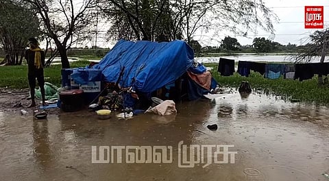 தமிழகத்தில் தொடர்ந்து கனமழை பெய்து வருவதால் ஸ்ரீபெரும்புதூரில் உள்ள பெரும்பாலான ஏரிகள் நிரம்பி தாழ்வான குடியிருப்பு பகுதிகளில் மழைநீர் சூழ்ந்துள்ளது. இந்நிலையில் ஸ்ரீபெரும்புதூர் பேரூராட்சிக்குட்பட்ட சிவன்தாங்கல் கிராமத்தில் உள்ள தாங்கல் பகுதியில் குடிசை வீடுகள் அமைத்து 21 இருளர் இன மக்கள் வசித்து வருகின்றனர்.