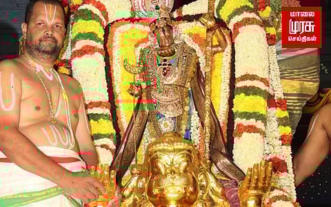 ஸ்ரீராம நவமியை முன்னிட்டு இன்று காலை ஏழுமலையான் கோவிலில் சீதாதேவி சமேத ராமர்,லக்ஷ்மணர், ஆஞ்சநேயர் ஆகிய உற்சவர்களுக்கு சிறப்பு அபிஷேகம் நடத்தப்பட்டது. தொடர்ந்து மாலை உற்சவர் மலையப்ப சுவாமி ராமர் அலங்கார திருக்கோலம் பூண்டு கோவிலில் இருந்து புறப்பட்டு வாகன மண்டபத்தை
