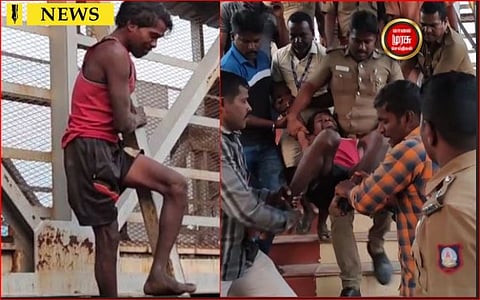குறிப்பாக அவருக்கு தமிழ் தெரியாத காரணத்தினால் திருவொற்றியூர் உதவி ஆய்வாளர் ஒருவர் ஹிந்தியில் அவரிடம் உரையாடி உள்ளார், அப்பொழுது அந்த நபர் தனக்கு மதுபாட்டில் வேண்டும் என கூறியுள்ளார், அதற்கு போலீசார் ஏற்பாடு செய்து தருகிறோம் என தெரிவித்து அவரிடம் லாவகமாக பேச்சுக் கொடுத்து வந்தார்கள். அதற்கு பிறகாக தீயணைப்புத் துறையினரும் கீழே வந்து தார்ப்பாய் மூலமாக தயார் நிலையில் இருந்தார்கள். ஒரு வேலை கீழே விழுந்தால் பிடிப்பதற்காக தயார் நிலையில் இருந்தார்கள். அதன் பிறகு போலீசார் நடைமேடை மேல் ஏறி அந்த நபரை மீட்டு விசாரணை மேற்கொண்டனர்.
