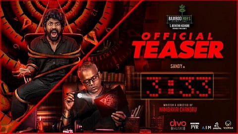 ரியாலிட்டி ஷோ மூலம் புகழடைந்த நடன இயக்குநர் சாண்டி நடிப்பில் உருவாகியுள்ள 3:33 படத்தின் டீசர் வெளியாகியுள்ளது.