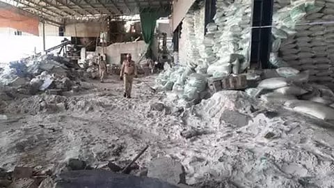 இதனிடையே சம்பவம் அறிந்து ஆழ்ந்த இரங்கல் தெரிவித்த பிரதமர் மோடி, உயிரிழந்தவர்கள் குடும்பத்திற்கு தலா 2 லட்சம் ரூபாய் பிரதமர் நிவாரண நிதியிலிருந்து வழங்க உத்தரவிட்டுள்ளார். இந்தநிலையில் சிமெண்ட் மூட்டைகளின் பழுவால் பக்கவாட்டு சுவர் இடிந்து விழுந்ததாக விசாரணையில் தெரியவந்துள்ளது.