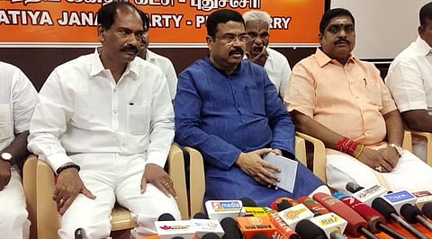 புதிய கல்விக் கொள்கையில் பல்வேறு முக்கிய அம்சங்கள் உள்ளதாகவும், உள்ளூர் மொழிகளில் பாடம் எடுக்கப்படும் என்றும் குறிப்பிட்டார். கொள்கை ரீதியாக அல்லாமல் அரசியல் ரீதியாகவே எதிர்க்கட்சிகள் எதிர்ப்பதாக கூறிய அமைச்சர் தர்மேந்திர பிரதான், புதுச்சேரியில் உள்ள அனைத்து அரசுப் பள்ளிகளும் சி.பி.எஸ்.சி பள்ளிகளாக தரம் உயர்த்த மத்திய அரசு நடவடிக்கை எடுக்கும் எனத் தெரிவித்தார்.