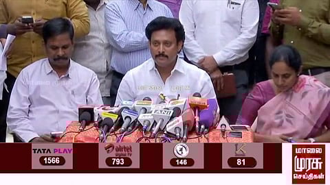 சென்னை தலைமை செயலகத்தில் 2022- 2023ம் கல்வியாண்டிற்கான 10,11,12ம் வகுப்பு பொதுத்தேர்வுகளுக்கான அட்டவணையை பள்ளிக்கல்வி துறை அமைச்சர் அன்பில் மகேஷ் பொய்யாமொழி வெளியிட்டு செய்தியாளர்களை சந்தித்தார்.