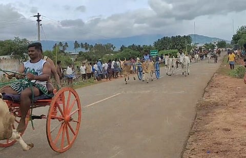 சின்னமனூரில் நடைபெற்ற இந்த மாட்டு வண்டி பந்தயத்தில், மாநிலத்தின் பல பகுதிகளில் இருந்து சுமார் 120 மாட்டு வண்டிகள் கலந்து கொண்டன. இந்த மாட்டு வண்டி பந்தயத்தில், நாட்டு மாடு, பூஞ்சிட்டு, தேன்சிட்டு,புள்ளி மான் என நான்கு வகையான மாடு வகைகளை கொண்டு, 4 பிரிவாக தனித்தனியாக நடைபெற்றது.