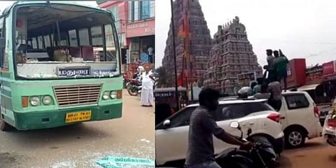அதனைத் தொடர்ந்து கல் வீசி விட்டு தப்பி சென்ற வாகனம் குறித்து போலீசார் விசாரணை மேற்கொண்டு வருகின்றனர். மேலும் அரசு பேருந்துகளின் கூரை மீது பயணம் செய்ய போலீசார் அனுமதி மறுத்ததற்கு சிலர் எதிர்ப்பு தெரிவித்தனர்.