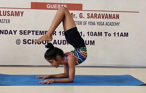 இந்நிலையில் விருட்சிகாசானத்தில் உலக சாதனை புரிய விரும்பிய சிறுமி நேகா, கடந்த ஆறு மாதங்களாக அதற்கான சிறப்பு பயிற்சி பெற்று வந்தார். அதனை தொடர்ந்து இன்று கோவை நீலம்பூர் பகுதியில் கின்னஸ் உலக சாதனை நிகழ்வு நடைபெற்றது. அதில் கலந்து கொண்ட சிறுமி நேகா யோகாசனத்தில் மிக சிரமமான விருட்சிகாசானத்தை தொடர்ந்து நான்கு நிமிடம் 47 விநாடிகள் செய்து சாதனை புரிந்தார்.