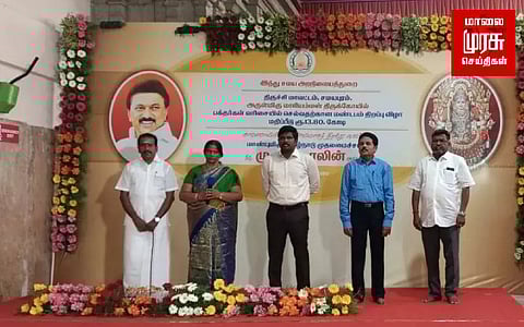 திருச்சி சமயபுரம் மாரியம்மன் கோயிலில் புதிதாக கட்டப்பட்டுள்ள பக்தர்களுக்கான கியூ வரிசை வளாகத்தை முதலமைச்சர் மு.க.ஸ்டாலின் காணொலி காட்சி மூலம் திறந்து வைத்தார்.