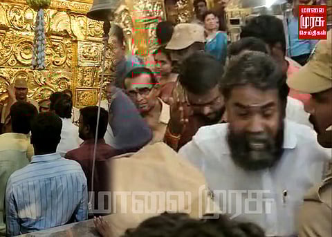 திண்டுக்கல் | பழனி முருகன் கோவிலில் கும்பாபிஷேகம் ஜனவரி 28ம் தேதி நடைபெற்றது. இந்த கும்பாபிஷேகத்தை நேரில் காண லட்சக்கணக்கான பக்தர்கள் சாமி தரிசனம் செய்து வரும் நிலையில், கடந்த ஜனவரி 26ம் தேதி அன்று, மாலை நேரம், பழனி தண்டாயுதபானி மூலவர் சிலை அமைந்துள்ள கருவறைக்குள் ஒரு சிலர் உள்ளே சென்றனர். இதுகுறித்த வீடியோக்கள் சமூக வலைதளங்களில் வைரலாக பரவி வருகிறது.