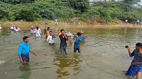 இதனையடுத்து கிராம மக்கள் தங்களுக்கென தனி மயானம் அமைத்துக் கொடுத்து, ஆற்றின் குறுக்கே பாலம் அமைத்துக் கொடுக்க வேண்டும் என கிராம மக்கள் கோரிக்கை வைத்துள்ளனர்.