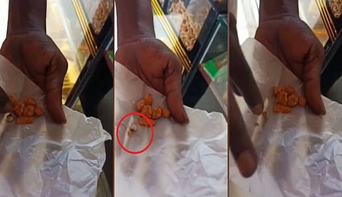 கடலூர் மாவட்டம் திட்டக்குடியில் உள்ள ஒரு பேக்கரி கடைக்கு சென்ற கொளஞ்சி என்பவர், சாப்பிடுவதற்காக பக்கோடா கேட்டுள்ளார், கடை ஊழியர்களும் பக்கோடாவை பேப்பரில் வைத்து அவரிடம் சாப்பிட கொடுத்துள்ளனர்.