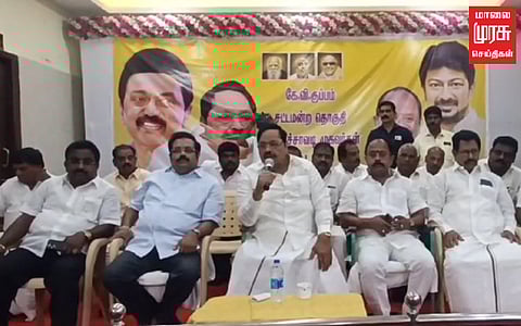 வேலூர் மாவட்டம் கே.வி.குப்பம் அருகே திமுக சார்பில் நடைபெற்ற வாக்குச்சாவடி முகவர்கள் ஆலோசனை கூட்டத்தில் சிறப்பு அழைப்பாளராக அமைச்சர் துரைமுருகன் பங்கேற்றார். பின்னர் செய்தியாளர்களிடம் பேசிய அவரிடம், மேகதாது விவகாரத்தில் தமிழக அரசு தேவையில்லாமல் தலையிடுவதாக கர்நாடக முதலமைச்சர் சித்தராமையா பேசியது குறித்து கேள்வி எழ்ப்பினர். அதற்கு பதலளித்த துரைமுருகன், மேகதாது விவகாரத்தில் முழு விவரம் தெரியாமல் சித்தராமையா கருத்துக்களை தெரிவித்துள்ளதாக சாடினார்.