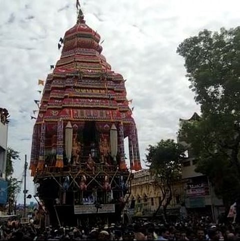 விழாவின் முக்கிய நிகழ்ச்சியான இன்று தேரோட்டம், அதிகாலையில் ஏகாந்த திருமஞ்சனம் முடிந்து, பிரம்மமுகூர்த்தத்தில் திருத்தேரில் எழுந்தருளிய ஆண்டாள், ரெங்கமன்னாருக்கு ஸ்ரீரங்கம் ரெங்கநாதர் கோவிலில் இருந்து கொண்டுவரப்பட்ட, பட்டு வஸ்திரங்கள் மற்றும் மங்களப்பொருட்கள் சாத்தப்பட்டு, சிறப்பு பூஜைகள் நடைபெற்றது.