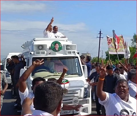 இதைத் தொடர்ந்து விருதுநகர் செல்வதற்காக மதுரை திருமங்கலம் வழியாக மேலக்கோட்டை, சிவரக்கோட்டை, கள்ளிக்குடி உள்ளிட்ட பகுதிகளில் முன்னாள் அமைச்சர் ஆர்.பி.உதயகுமார் தலைமையிலான அதிமுகவினர் எடப்பாடி பழனிச்சாமிக்கு உற்சாக வரவேற்பு அளித்தனர்.