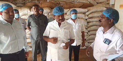 ஈரோடு சென்னிமலை சாலையில் உள்ள ஆவின் கால்நடை தீவன தொழிற்சாலையில் மாவட்ட ஆட்சியர் கிருஷ்ணனுண்ணி பால்வளத்துறை அமைச்சர் நசர் ஆகியோர் திடீர் ஆய்வு மேற்கொண்டார்