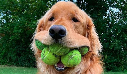 அமெரிக்காவில் 2017ம் முதலில் பின்னிபாய்மோலியின் என்பவர் கோல்டன் ரெட்ரீவர் நாயை வளர்த்து வந்தள்ளார். இந்த நாய் வாயில் டென்னிஸ் பந்துகளைத் தொடுவதற்கு ஒரு தனித்துவமான திறமை இருப்பதை கண்டறிந்து அடிக்கடி கோல்டன் ரெட்ரீவருக்கு ஒரு டென்னிஸ் பந்தை எறிவார். அது அந்த பந்தை பிடித்து மீண்டும் அவரிடமே எறிந்து விளையடும். இதனை தொடர்ச்சியாக ஒரு நாள் இதனை ஏன் சாதனையாக செய்யக்கூடாது என்ற யோசனை தோன்றியது. எனவே கோல்டன் ரெட்ரீவருக்கு தினமும் பயிற்சி அளித்து வாயில் 6 பந்துகளை வைக்க பயிற்சி கொடுத்து கடந்த 2020ஆம் ஆண்டு இந்த கின்னஸ் சாதனை படைக்க உதவியுள்ளார். இதற்கான சான்று இப்போது தான் கிடைத்துள்ளதாக பின்னிபாய்மோலி தெரிவித்துள்ளார்.