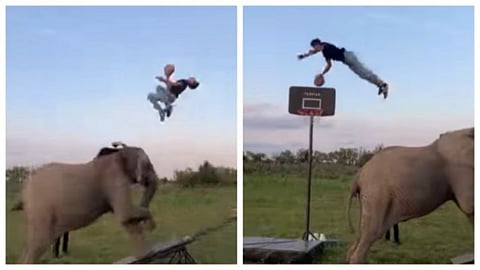 யானையை பயன்படுத்தி , நபர் ஒருவர் உயரமாக இருந்த கூடைக்குள் பந்தினை இடமுயன்ற வீடியோ இணையத்தை கலக்குகிறது.