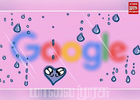 பின்க் (இளஞ்சிவப்பு) நிற பின்னணியில், மழைத்துளிகள் கண்ணாடியில் வழிவது போல வடிவமைக்கப்பட்ட இந்த டூடுலானது அனிமேட் செய்யப்பட்டுள்ளது.