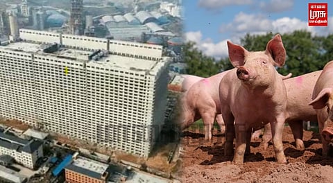 சீனாவில் உலகின் மிகப்பெரிய பன்றிப்பண்ணை அமைந்துள்ள நிலையில், இதன் காரணமாக நோய் பரவும் அபாயம் உள்ளதாக நிபுணர்கள் எச்சரித்துள்ளனர். ஹூபேயின் ஏசோ என்ற நகரில் 26 மாடிகள் கொண்ட பிரம்மாண்ட கட்டடம் அமைக்கப்பட்டு பன்றிப் பண்ணை அமைக்கப்பட்டுள்ளது.