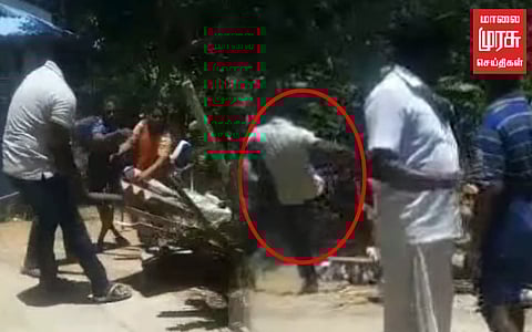 கன்னியாகுமரி மாவட்டம் மார்த்தாண்டம் அருகே பெண் ஒருவரை யூனியன் கவுன்சிலர் காலால் எட்டி மிதித்து தாக்கும் காட்சி வைரலாகியுள்ளது.