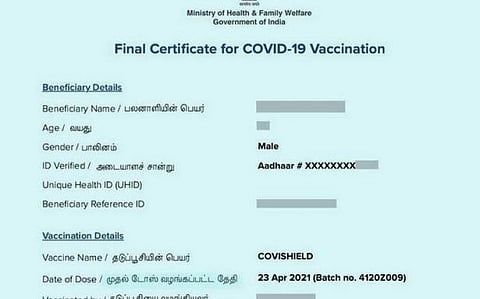 கொரோனா தடுப்பூசி செலுத்தப்பட்டப்பின் வழங்கப்படும் சான்றிதழில் தவறு இருந்தால் திருத்தம் செய்யலாம் என தெரிவிக்கப்பட்டுள்ளது.
