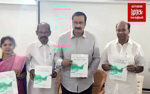 விழுப்புரம் மாவட்டம் தைலாபுரத்தில் நடைபெற்ற நிகழ்ச்சியில் பாமக சார்பில் தயாரிக்கப்பட்ட நிழல் நிதிநிலை அறிக்கையை அக்கட்சியின் நிறுவனர் ராமதாஸ் மற்றும் தலைவர் அன்புமணி ராமதாஸ் ஆகியோர் வெளியிட்டனர்.