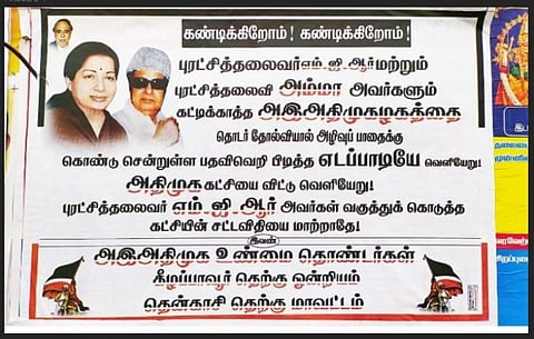 கண்டன போஸ்டரில் 'கண்டிக்கிறோம் கண்டிக்கிறோம் புரட்சித்தலைவர் எம்ஜிஆர் மற்றும் புரட்சித்தலைவி அம்மா அவர்களும் கட்டி காத்த அஇஅதிமு கழகத்தை தொடர் தோல்வியால் அழிவு பாதைக்கு கொண்டு சென்றுள்ள பதவி வெறி பிடித்த எடப்பாடியே வெளியேறு அதிமுக கட்சியை விட்டு வெளியேறு புரட்சித்தலைவர் எம்ஜிஆர் அவர்கள் வகுத்துக் கொடுத்த கட்சியின் சட்ட விதியை மாற்றாதே என்றும் இவன் அஇஅதிமுக உண்மை தொண்டர்கள் கீழப்பாவூர் தெற்கு ஒன்றியம் தென்காசி தெற்கு ' என அச்சிடப்பட்டுள்ளது. பாவூர்சத்திரம் பகுதிகளில் எடப்பாடி பழனிச்சாமிக்கு எதிராக கண்டன போஸ்டர்கள் ஒட்டியவர்கள் மீது நடவடிக்கை எடுக்க வேண்டும் என கூறி கீழப்பாவூர் ஒன்றிய அதிமுக சார்பில் பாவூர்சத்திரம் போலீஸ் நிலையத்தில் புகார் அளிக்கப்பட்டுள்ளது.
