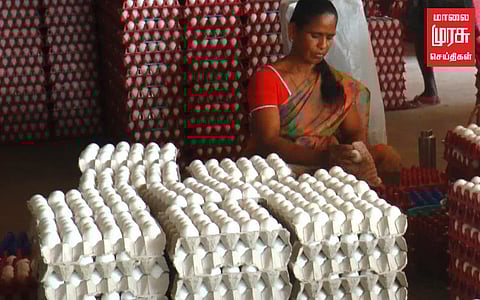 நாமக்கலில் இருந்து இலங்கைக்கு முட்டைகள் ஏற்றுமதி செய்யப்படுவதால் கோழிப் பண்ணையாளர்கள் மகிழ்ச்சியடைந்துள்ளனா்.