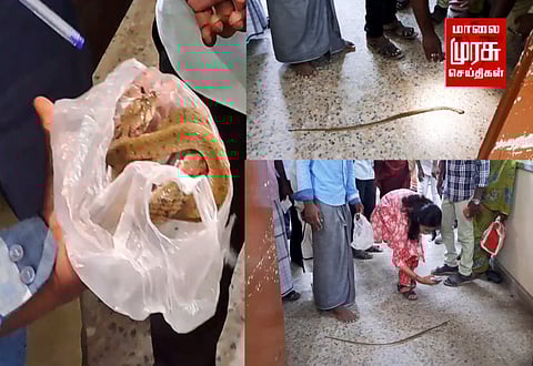 பின்னர் நாகை அரசு மருத்துவக்கல்லூரி மருத்துவமனைக்கு ஓடோடி வந்தவர், தன்னை பாம்பு கடித்து விட்டது என கூறியதோடு, கடித்த பாம்பை அனைவர் முன்னிலையிலும் காட்டினார்.