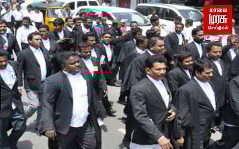 சைதாப்பேட்டை வழக்கறிஞர் ஜெய்கணேஷ் படுகொலை கண்டித்து சென்னை உயர்நீதிமன்ற வழக்கறிஞர்கள் சங்கம் சார்பில் சாலை மறியல் போராட்டம் நடைபெற்றது