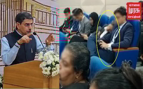 திருச்சியில் நடைபெற்ற கருத்தரங்கு நிகழ்ச்சியில் ஆளுநா் உரையின் போது மாணவா்கள் தூங்கி விழும் காட்சி வெளியாகியுள்ளது.