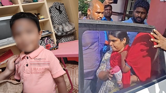 வேலூர் மாவட்டம், குடியாத்தம் காமாட்சியம்மன் பேட்டை பகுதியை சேர்ந்த சாப்ட்வேர் இன்ஜினியர் வேணு அவரது மனைவி ஜனனி. இவர்களது நான்கு வயது குழந்தை யோகேஷ் குடியாத்தம் பகுதியில் உள்ள தனியார் பள்ளியில் ப்ரீ.கே.ஜி படித்து வருகிறார். வழக்கம் போல் இன்று மதியம் சுமார் 12.30 மணி அளவில் அவரது தந்தை வேணு தனது இருசக்கர வாகனத்தில் பள்ளியிலிருந்து யோகேஷ் அழைத்து வந்து வீட்டுக்குள் சென்றபோது கர்நாடகா பதிவு எண் கொண்ட காரில் வந்த மர்ம நபர்கள் சிலர் வேணு மீது மிளகாய் பொடி தூவி விட்டு நான்கு வயது குழந்தை யோகேஷை காரில் கடத்திச் சென்றுள்ளனர்.