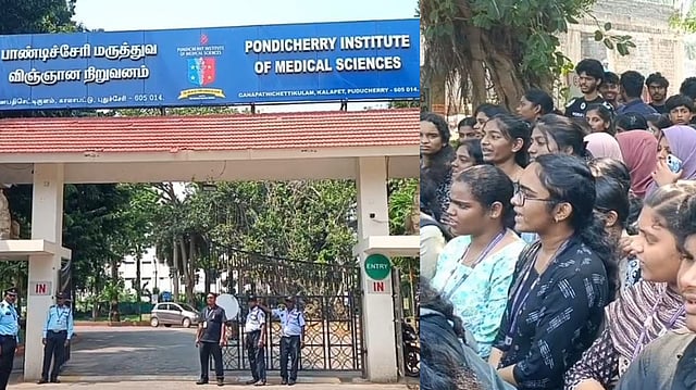 புதுச்சேரி மாநிலம், கனக செட்டிகுளம் பகுதியில் தனியார் மருத்துவ கல்லூரி மற்றும் மருத்துவமனை இயங்கி வருகிறது. இங்கு 700க்கும் மேற்பட்ட மாணவ மாணவிகள் பயின்று வரும் நிலையில் செவிலியர் கல்லூரியில் பயிலும் மாணவிகள் மருத்துவமனையில் பயிற்சிக்காக செல்லும்போது, அங்கு எக்ஸ்ரே பிரிவில் டெக்னீசியனாக பணிபுரியும் சரவணன் மற்றும் திவாகர் ஆகிய இருவரும் சேர்ந்து 10-க்கும் மேற்பட்ட மாணவிகளிடம் தேவையற்ற இடங்களில் தொடுவது, அநாகரிகமாக பேசுவது என தொடர்ந்து பாலியல் சீண்டலில் சீண்டலில் ஈடுபட்டதாக கூறப்படுகிறது.