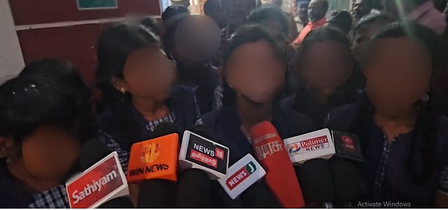 அப்போது அங்கு வந்த அதே பகுதியை சேர்ந்த பிரகாஷ் என்ற இளைஞர் மற்றும் அவரது நண்பர்கள் நான்கு பேர் கஞ்சா போதையில் மாணவிகளை தகாத வார்த்தைகள் பேசியும் “மாத்திரை வாங்கி தரேன் என் கூட ரூமுக்கு வரீங்களா” என கேட்டு அநாகரிகமாக நடந்துள்ளனர். மேலும் அருகில் உள்ள கடையில் இருந்த பொருட்களை எடுத்து மாணவிகளின் மீது வீசி காயப்படுத்த இருக்கின்றனர். ஒரு கட்டத்திற்கு மேல் மாணவிகள் கேள்வி எழுப்பிய போது மாணவிகளை அந்த கஞ்சா போதை இளைஞர்கள் மற்றும் அவரது பெற்றோர் ஆகியோர்கள் தகாத வார்த்தைகளால் திட்டியுள்ளனர்.