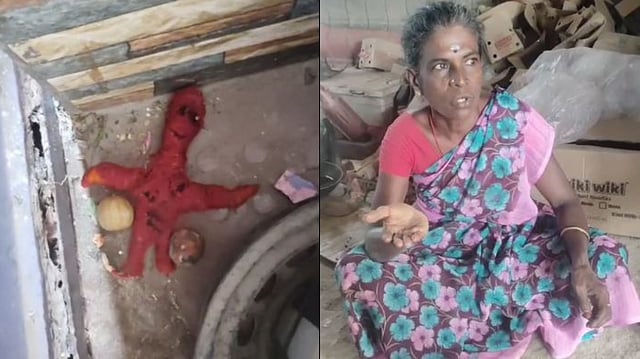 திண்டுக்கல் மாவட்டம் வேடசந்தூர் ஆத்துமேடு இந்திரா நகரை சேர்ந்தவர் 46 வயதுடைய ராஜா. இவர் அதே பகுதியில் மெக்கானிக் கடை வைத்து நடத்தி வருகிறார். இவருக்கும் பக்கத்துக்கு ஊரை சேர்ந்த 40 வயதுடைய ஆர்த்தி என்பவருக்கும் கடந்த சில வருடங்களுக்கு முன் திருமணமான நிலையில் இரண்டு குழந்தைகள் உள்ளனர். இந்த நிலையில் கடந்த சில நாட்களுக்கு முன்பு உறவினர் வீட்டிற்கு சென்று விட்டு மீண்டும் வீட்டிற்கு வந்து பார்த்தபோது வீட்டின் முன் பக்க ஜன்னல் வழியாக விபூதி அதிக அளவில் கிடப்பதை கண்டு அதிர்ச்சி அடைந்துள்ளார்.