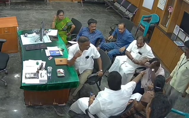 இந்த காட்சிகள் அலுவலகத்தில் இருந்த சிசிடிவி கேமராவில் பதிவான நிலையில் தற்போது இது குறித்த சிசிடிவி காட்சிகள் சமூக வலைதளங்களில் வைரலாகி இப்பகுதியில் உள்ள பொதுமக்கள், சமூக ஆர்வலர்கள், அரசியல் கட்சியினர் ஏன பல்வேறு தரப்பினரிடையே பெரும் அதிர்வலைகளை ஏற்படுத்துள்ளது . பல்வேறு கட்சியை சேர்ந்த நகர மன்ற உறுப்பினர்கள் இது குறித்து புகார் அளித்துள்ள நிலையில், வழக்கு பதிவு செய்து உண்மையாக வழக்கினை விசாரணை செய்து உரிய நடவடிக்கை எடுக்க வேண்டும் என்பது இப்பகுதியில் உள்ள பொதுமக்கள் மற்றும் சமூக ஆர்வலர்களின் கோரிக்கையாக உள்ளது.