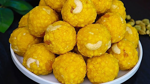 விநாயகர் சதுர்த்தி நெருங்கிவிட்ட நிலையில், வீடுகளில் பலவிதமான பலகாரங்கள் செய்து விநாயகருக்குப் படைப்பது வழக்கமான ஒன்று. அந்தப் பலகாரங்களில் மிகவும் முக்கியமானது பூந்தி லட்டு. சிறிய பூந்திகளைச் சர்க்கரைப் பாகில் கலந்து, உருண்டையாகப் பிடித்து செய்யப்படும் இந்த லட்டு, விநாயகருக்கு மிகவும் பிடித்தமான ஒரு இனிப்புப் பண்டிகையாகும். இந்த விநாயகர் சதுர்த்திக்கு வீட்டிலேயே, சுலபமான முறையில், ருசியான பூந்தி லட்டு செய்வது எப்படி என்று விரிவான குறிப்பு இதோ!