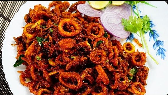 கனவா மீன் (ஸ்க்விட்) வறுவல் என்பது கடற்கரை உணவுகளில் மிகவும் பிரபலமானது. கனவா மீனின் தனிப்பட்ட சதைப்பற்று, அதை வறுக்கும்போது ஒரு மென்மையான, ரப்பர் போன்ற அமைப்பைத் தராமல், சுவையான அமைப்பைத் தரும். இது மற்ற மீன் வகைகளைவிடச் சற்று வேறுபட்ட சுவையைக் கொண்டிருக்கும். அதிக மசாலா சேர்க்காமல், எளிய முறையில் செய்யும் இந்த வறுவல், காரமாகவும், மொறுமொறுப்பாகவும் இருக்கும். இது பசியைத் தூண்டும் ஓர் அற்புதமான சிற்றுண்டியாகும்.