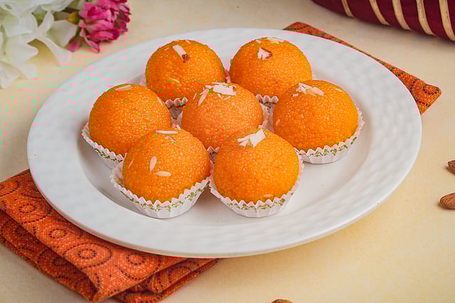 எண்ணெய்: பூந்தி பொரிப்பதற்கு நல்லெண்ணெய் அல்லது நெய்யை பயன்படுத்தலாம்.