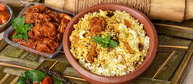 மலபாரின் மணமும் சுவையும் கலந்த பிரியாணிக்கு ஈடு இணை இல்லை. கேரளாவின் பாரம்பரிய அரிசியான கைமா அல்லது ஜீரகசாலை அரிசியைப் பயன்படுத்தி செய்யப்படும் இந்த பிரியாணி, மற்ற பிரியாணிகளில் இருந்து முற்றிலும் வேறுபட்டது. இதில், காரம், புளிப்பு, மணம் என அனைத்தும் சரியான அளவில் கலந்து ஒரு புதிய அனுபவத்தைத் தரும். முக்கியமாக, இதில் மசாலா கலந்த சிக்கன், வறுத்த வெங்காயம், முந்திரி, கிஸ்மிஸ் மற்றும் நெய் சேர்த்துப் பரிமாறப்படும்போது அதன் சுவை அலாதியானது.