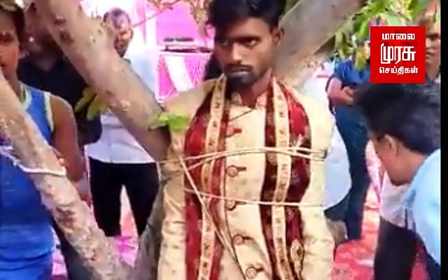 உத்தரபிரதேசம்: உத்தரபிரதேசத்தில், கூடுதலாக வரதட்சிணை கேட்ட மணமகனை, மரத்தில் கட்டி வைத்துள்ளனர், மணமகள் வீட்டார்.
