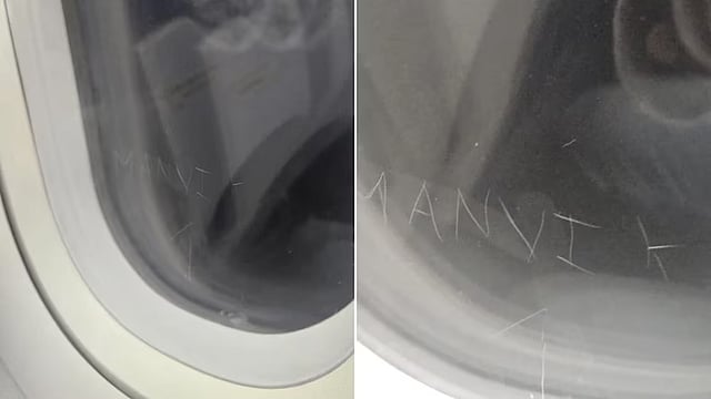 வைரலாகி வரும் அந்தப் புகைப்படத்தில், விமானத்தின் ஜன்னல் கண்ணாடியில் 'மான்விக்' (Manvik) என்ற பெயர் மிகத் தெளிவாகச் செதுக்கப்பட்டுள்ளது. இது ஏதோ ஒரு சிறிய கிறுக்கல் அல்ல, மாறாகக் கூர்மையான ஆயுதத்தைக் கொண்டு கண்ணாடியின் மேல் அடுக்கை கீறி எழுதப்பட்டிருப்பதாகத் தெரிகிறது. விமானத்தின் உட்புறத்தில் உள்ள ஜன்னல் அடுக்குகள் பொதுவாக அக்ரிலிக் அல்லது வலுவான பிளாஸ்டிக் பொருட்களால் செய்யப்பட்டவை என்றாலும், அதில் இத்தகைய சேதத்தை ஏற்படுத்துவது விமானத்தின் பாதுகாப்பிற்கும் அழகிற்கும் குந்தகம் விளைவிக்கும் செயலாகவே பார்க்கப்படுகிறது.