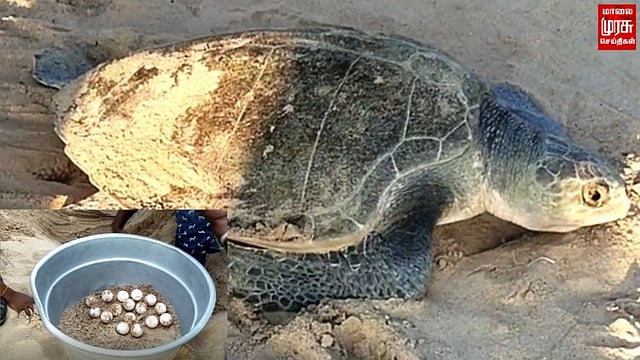 நெல்லை மாவட்டம் உவரி அருகே உள்ள கூட்டப்பனை கடற்கரை கிராமத்தில் பஞ்சல் ஆமை என அழைக்கப்படும் அரிய வகை ஆலிவ் ரெட்லி வகையை சேர்ந்த கடல் ஆமை முட்டையிட்டு குஞ்சு பொரிக்க கரை ஒதுங்கியது.